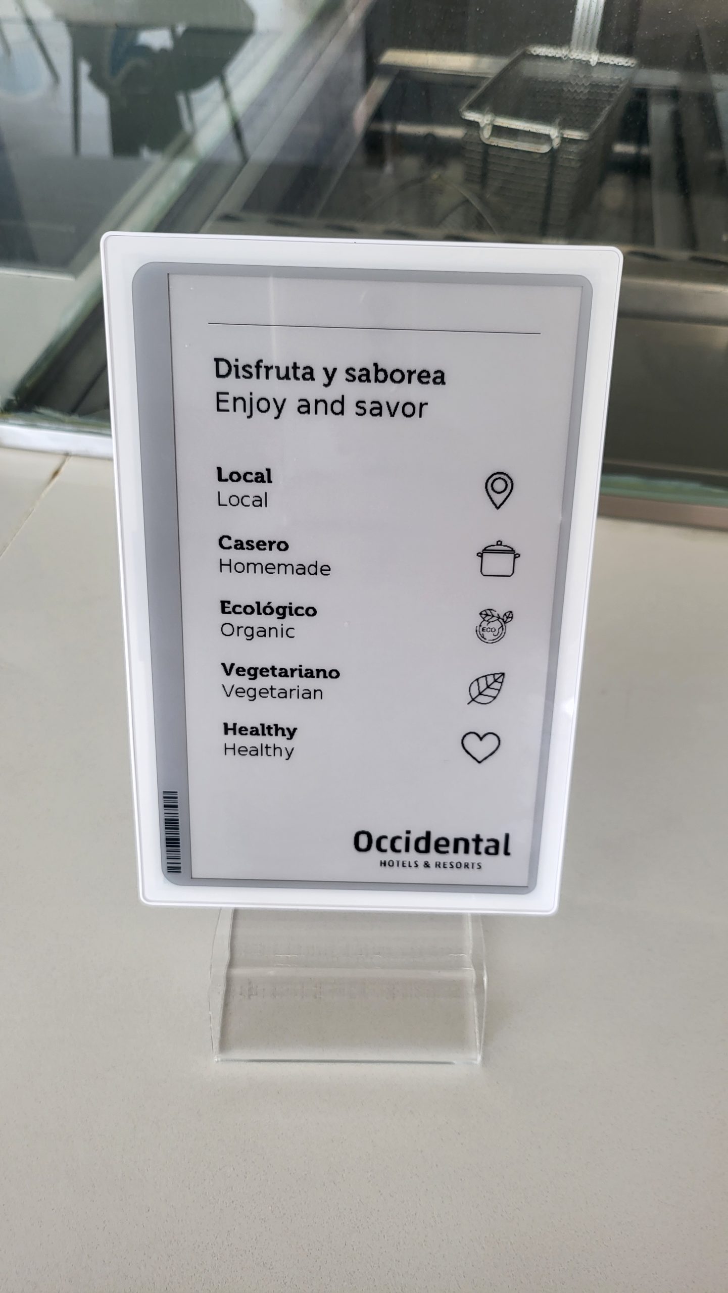 Esta destacada cadena hotelera se dedica a implementar medidas ambientales con el fin de preservar el entorno natural y cultural en sus destinos. Su enfoque incluye una eficiente gestión de energía y agua, la disminución de residuos y la protección de la biodiversidad local. En esta estrategia, las Etiquetas Electrónicas desempeñan un papel crucial al reducir el uso de papel, evitar el desperdicio de alimentos y fomentar la eficiencia energética. Al eliminar la necesidad de imprimir etiquetas constantemente, se reducen los recursos naturales utilizados y se minimiza la generación de residuos. Además, estas etiquetas permiten una gestión ágil de la información, evitando el exceso de producción de alimentos y facilitando la adaptación de los menús a cambios o necesidades específicas.